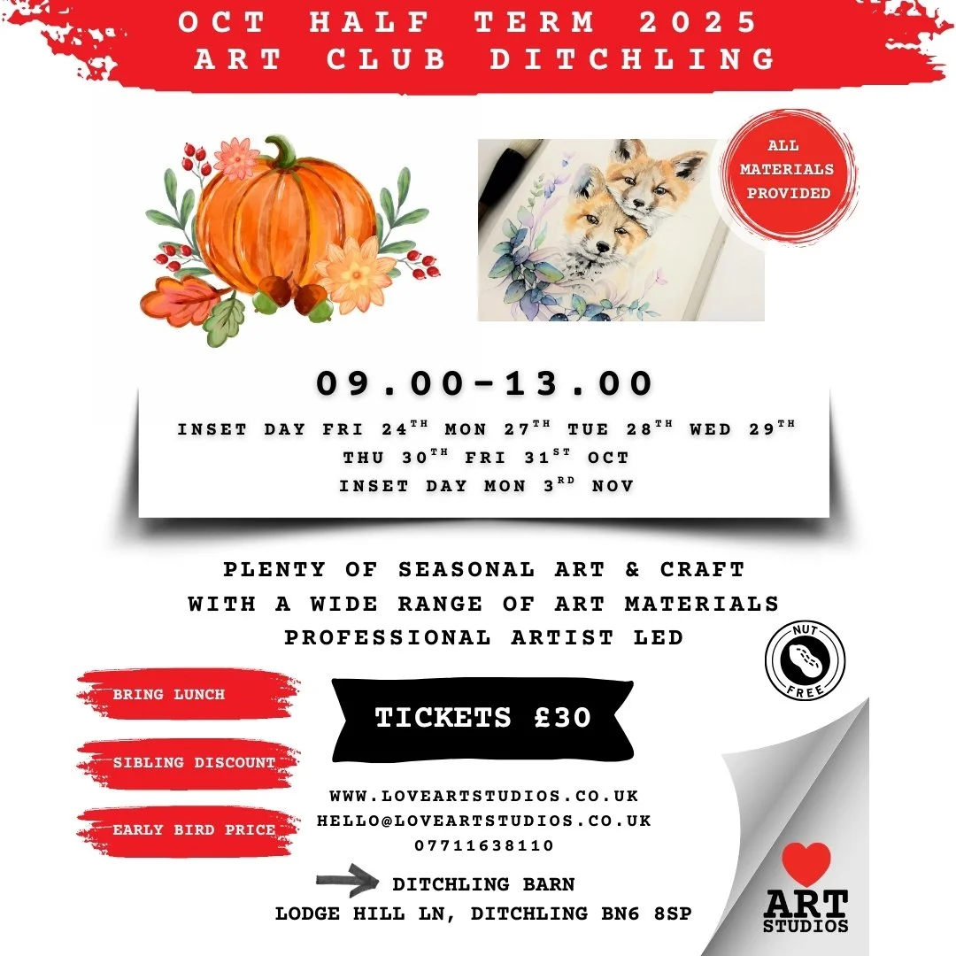 “The success of our species comes down to this; art creates culture, culture creates community and community creates humanity.” Your Brain on Art Events Paper Flower Workshops in Hassocks from £30.00 Date: Select Date SUN 19TH OCT - POPPY - EARLY BIRD £30 SUN 19TH OCT - POPPY - STANDARD TICKET £40 SUN 16TH NOV - CYCLAMEN - EARLY BIRD £35 SUN 16TH NOV - CYCLAMEN - STANDARD TICKET £45 Add To Cart Added! October Half Term Art Club Ditchling 2025 from £25.00 Dates: Select Dates First 5 Special - £25 Fri 24th Oct First 5 Special Offer - £25 Mon 27th Oct First 5 Special Offer - £25 Tue 28th Oct First 5 Special Offer - £25 Wed 29th Oct First 5 Special Offer - £25 Thu 30th Oct First 5 Special Offer - £25 Fri 31st Oct First 5 Special Offer - £25 Mon 3rd Nov Standard Ticket - £30 Fri 24th Oct Standard Ticket - £30 Mon 27th Oct Standard Ticket - £30 Tue 28th Oct Standard Ticket - £30 Wed 29th Oct Standard Ticket - £30 Thu 30th Oct Standard Ticket - £30 Fri 31st Oct Standard Ticket - £30 Mon 3rd Nov Sibling Ticket - £25 must be booked with standard/early bird ticket on same date Add To Cart Added! ART IN THE VINES WITH GEORGE MOIR £48.00 Dates: Select Dates THU 13TH NOV 7-9PM FRI 21ST NOV 10AM-12 Add To Cart Added! Watercolours/Mixed Media at One Garden Brighton £25.00 Date: Select Date THU 16TH OCT 25 FRI 7th Nov 25 THU 20TH NOV 25 FRI 5TH DEC 25 THU 18TH DEC 25 THU 15TH JAN 26 FRI 6TH FEB 26 THU 19TH FEB 26 Add To Cart Added! Intro to Watercolour in Lindfield Mon 10th & 17th Nov 2025 £120.00 Add To Cart Added! Home Ed Art Sessions MONDAYS Age Concern, Hassocks from £22.00 Sept - Dec 2025: Select Sept - Dec 2025 FULL TERM 9.30 FULL TERM 10.50 FULL TERM 12.15 DEPOSIT 9.30 DEPOSIT 10.50 DEPOSIT 12.15 PAYG 9.30 8TH SEPT PAYG 9.30 15TH SEPT PAYG 9.30 22ND SEPT PAYG 9.30 29TH SEPT PAYG 10.50 8TH SEPT PAYG 10.50 15TH SEPT PAYG 10.50 22ND SEPT PAYG 10.50 29TH SEPT PAYG 12.15 8TH SEPT PAYG 12.15 15TH SEPT PAYG 12.15 22ND SEPT PAYG 12.15 29TH SEPT Add To Cart Added! 2025 Autumn Term After School Club from £13.50 Autumn Term 2025: Select Autumn Term 2025 Ditchling TUESDAY Deposit Ditchling FRIDAY Deposit Hurstpierpoint WEDNESDAY Deposit Albourne WEDNESDAY Deposit Coombe Road TUESDAY Deposit Ditchling TUESDAY Full Term Ditchling FRIDAY Full Term Albourne WEDNESDAY Full Term Coombe Road TUESDAY Full Term Hurstpierpoint WEDNESDAY Full Term Single Session Ditchling Tues Single Session Coombe Rd Tues Single Session Hurst Wed Single Session Albourne Wed Single Session Ditchling Friday Add To Cart Added! Show your interest £0.00 Add To Cart Added!